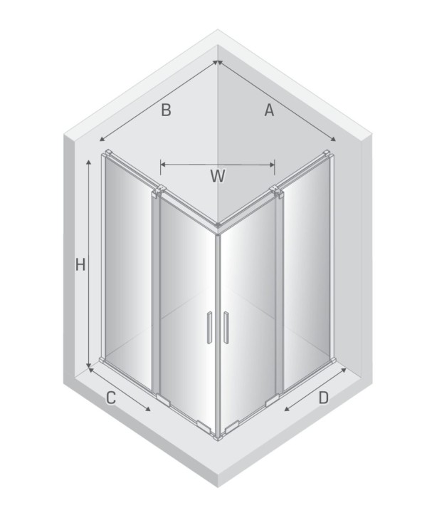 SMART Dusjhjørne m/fastvegger + doble skyvedører – 8mm glass