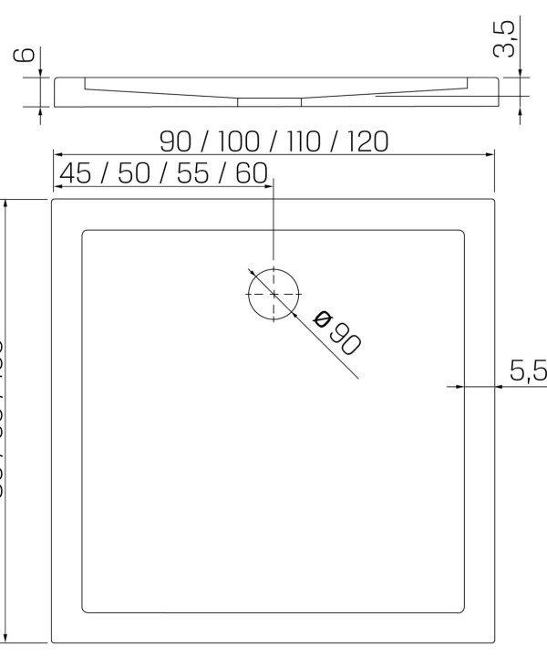 120x100x6 | CANTARE™ Dusjkar | Rektangulært | Hvit
