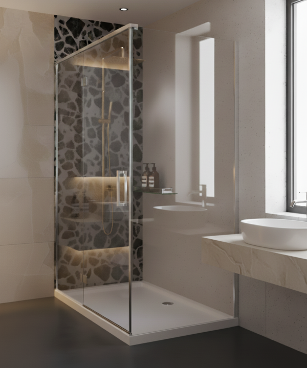 - Slim design med lav høyde (6 cm): Gir et moderne og diskré uttrykk, samtidig som det er enkelt å gå inn og ut av dusjen.