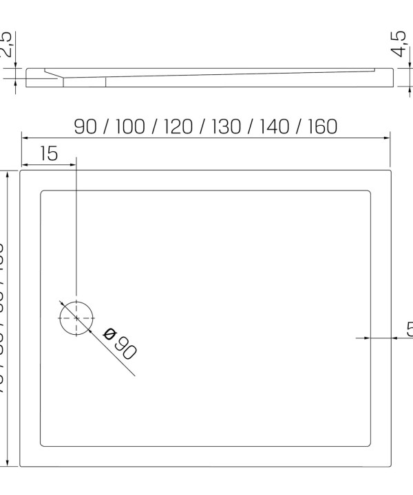 Overflaten er utviklet for å være ekstra motstandsdyktig mot riper, misfarging og daglig slitasje, samtidig som den er enkel å holde ren. Med Ø90 mm avløpshull og ferdig fall for optimal vanndrenering, får du en løsning som fungerer sømløst både med og uten sokkel.
