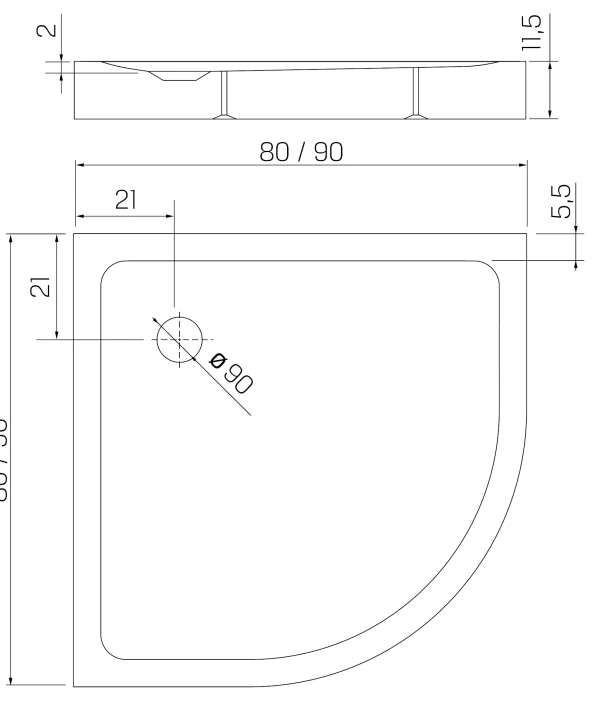 80x80x11,5 MILD STONE™ Dusjkar | Klassisk Buet | Høy Utgave | Skifereffekt