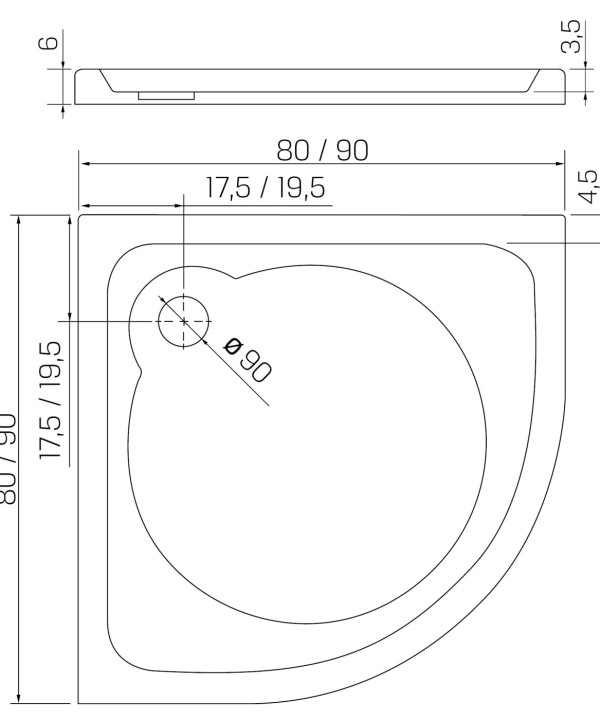 80x80x6 – CANTARE™ Dusjkar – Klassisk Buet i Hvit