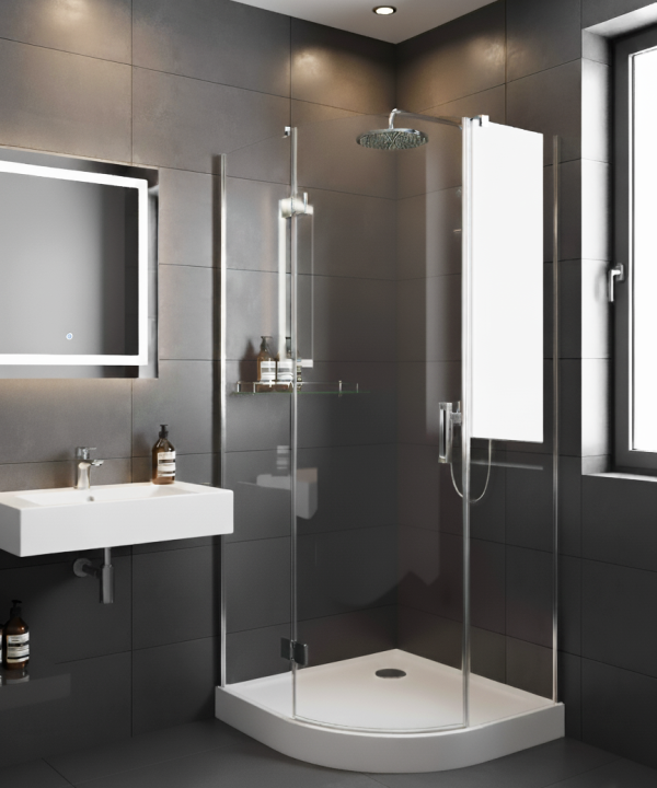 90x90x11,5 | MILD STONE™ Dusjkar | Klassisk Buet | Høy Utgave | Skifereffekt