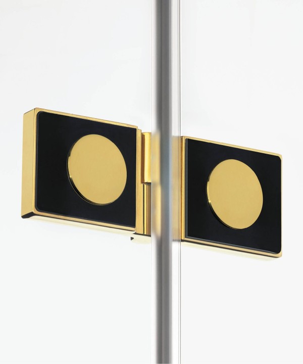 90x90x200 | AVEXA™ Dusjhjørne | Svingbare doble dører + Fastfelt | 6mm Glass | Børstet Gull