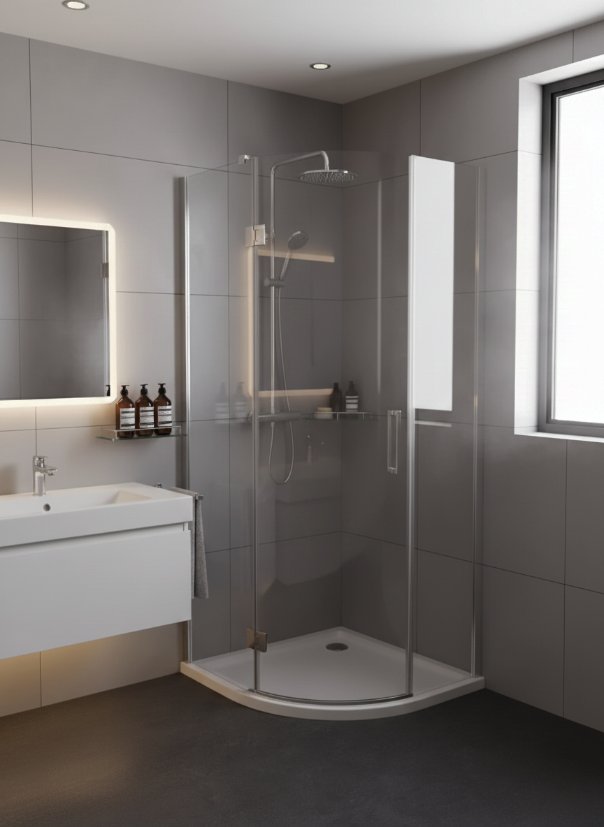 90x90x4,5 | NEW CANTARE™ Dusjkar | Klassisk Buet | Hvit
