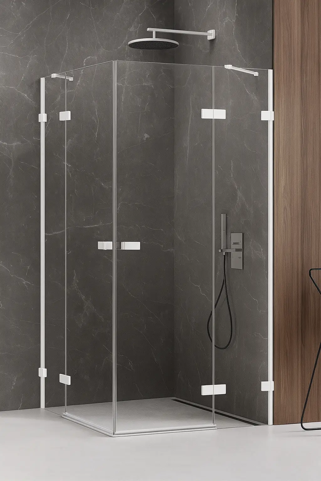 AVEXA Dusjhjørne m/to svingdører og to sidevegger i Hvit Matt