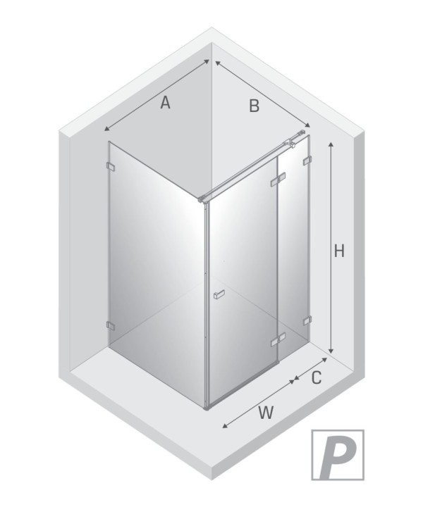 AVEXA LUX Dusjhjørne – Høyre Enkeltdør + Fastvegg i Blank Gull