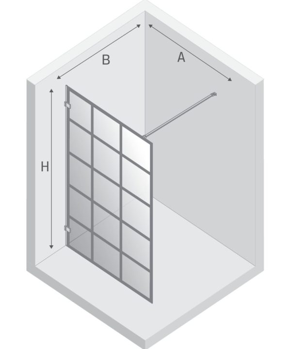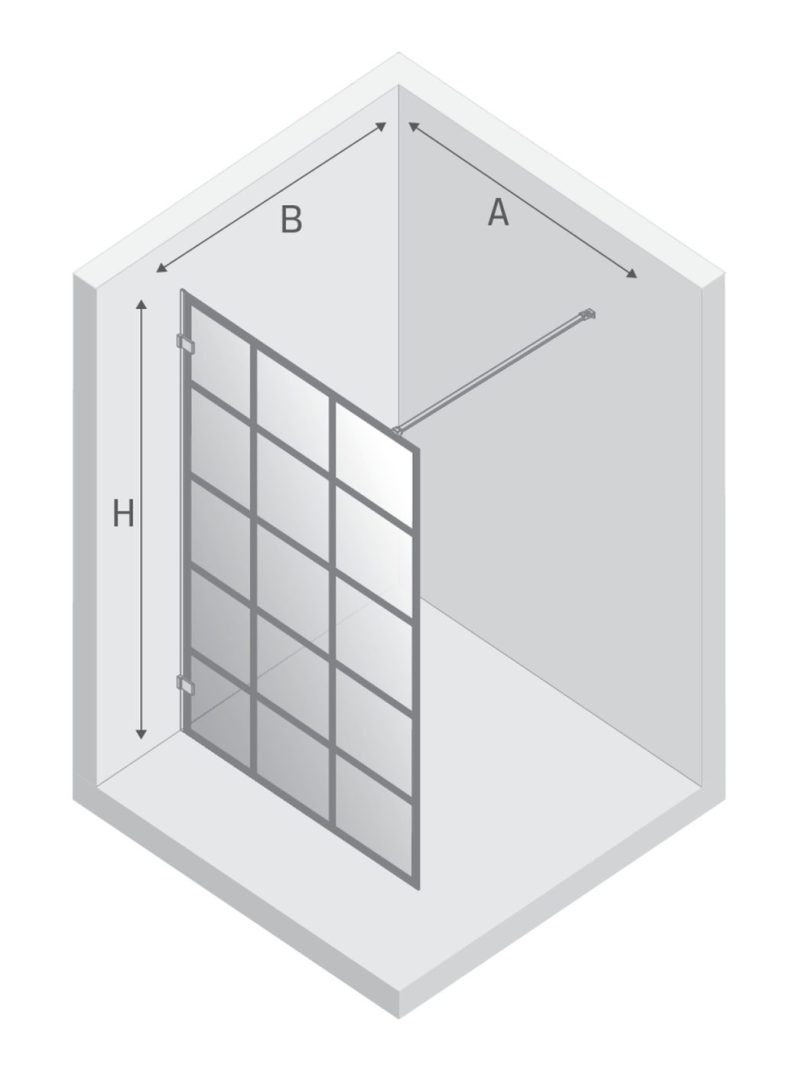 AVEXA™ Walk-in Dusjvegg | Enkel Glassvegg med sprosser | 6mm Glass | Sort Matt