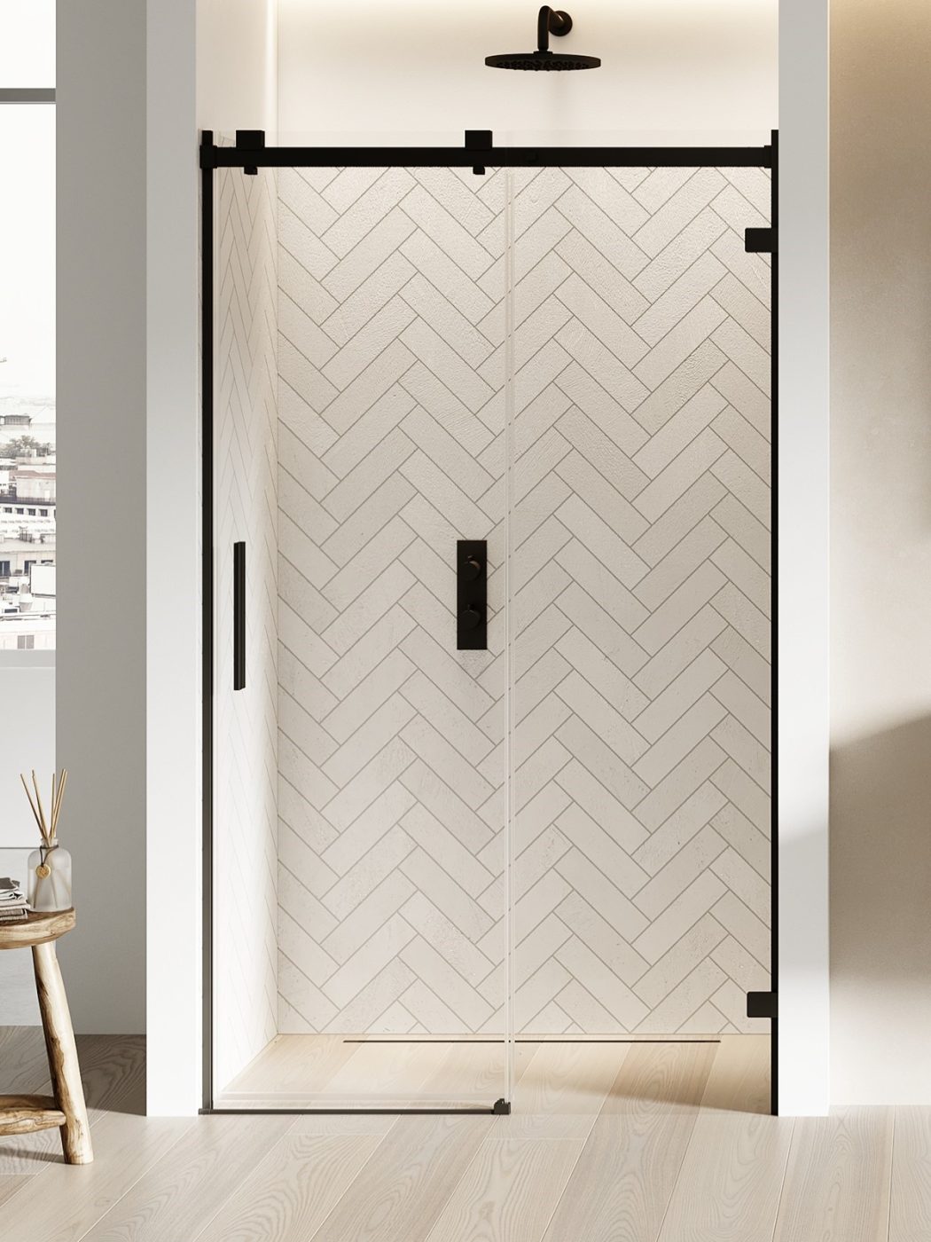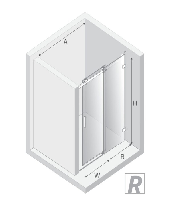 SOFTI X Dusjvegg for nisje | Enkel skyvedør mot høyre | Sort Matt